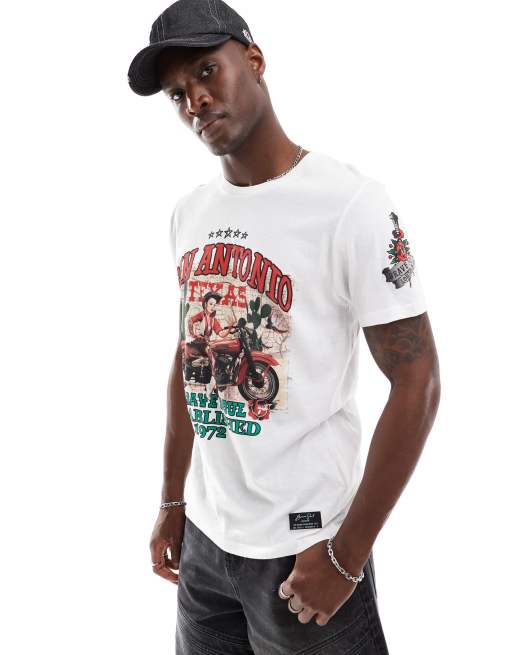 Brave Soul – Biały T-shirt z krótkimi rękawami i nadrukiem na plecach