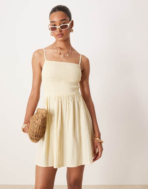 Brave Soul – Bladożółta marszczona na biuście sukienka mini na ramiączkach