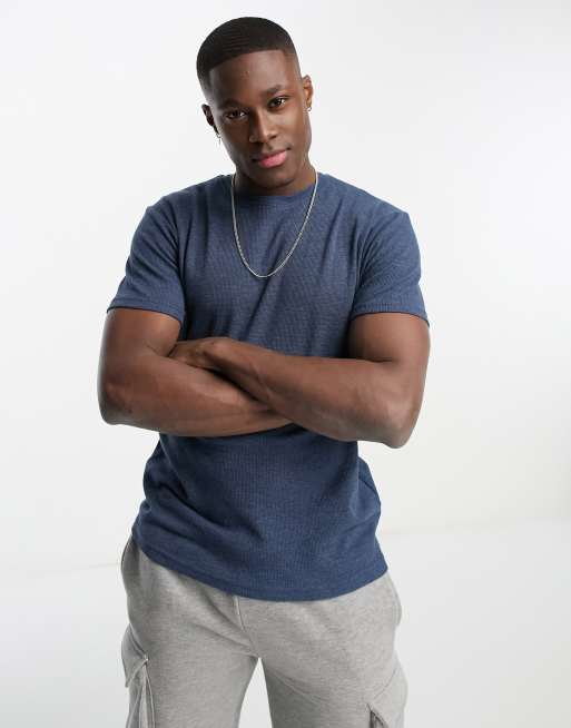 Brave Soul – Ciemnoniebieski T-shirt z materiału o waflowym splocie