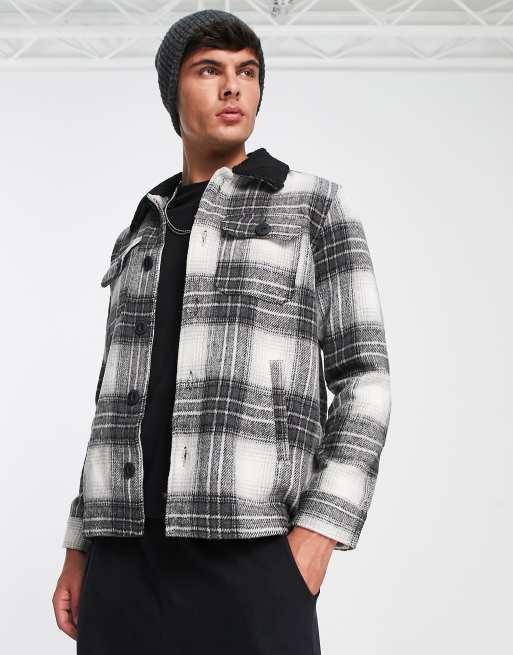 Brave Soul – Czarna kurtka w kratkę z kołnierzykiem z kożuszka