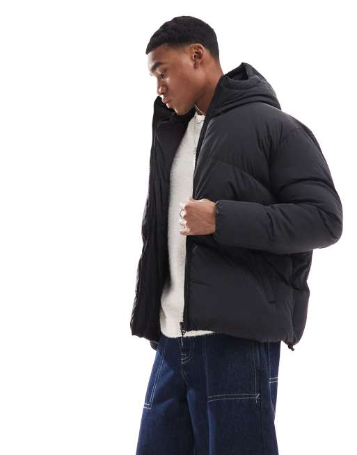 Brave Soul – Czarna pikowana kurtka ocieplana z kapturem w jodełkę