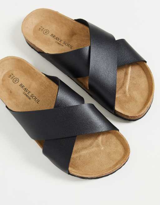 Brave Soul – Czarne klapki ze skrzyżowanymi paskami z imitacji skóry