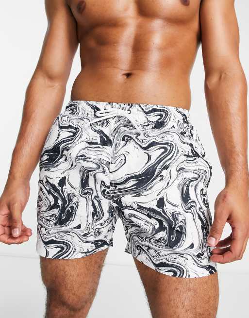 Brave Soul – Czarno-białe szorty kąpielowe w marmurkowy wzór