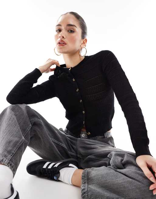 Brave Soul – Czarny kardigan z okrągłym dekoltem i ozdobnymi szwami