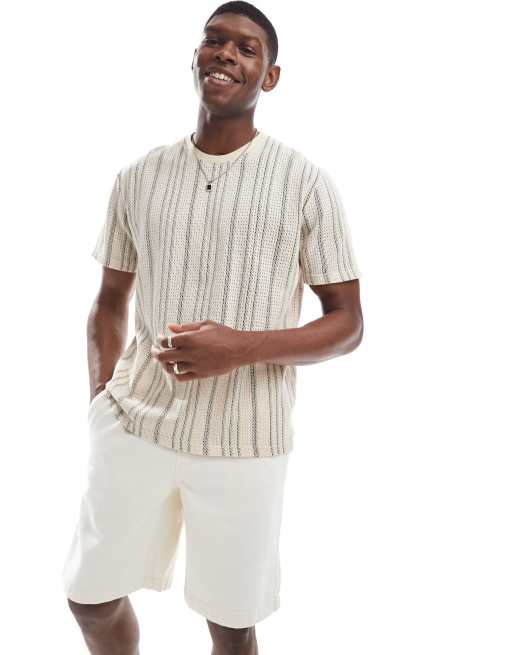 Brave Soul – Fakturowany T-shirt z okrągłym dekoltem w paski w kolorach czarnym i ecru