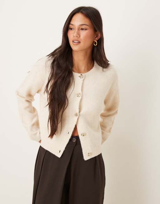Brave Soul – Kamiennobeżowy kardigan z okrągłym dekoltem i kontrastowymi guzikami