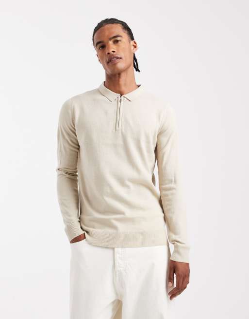 Brave Soul – Kremowy prążkowany sweter z suwakiem pod szyją