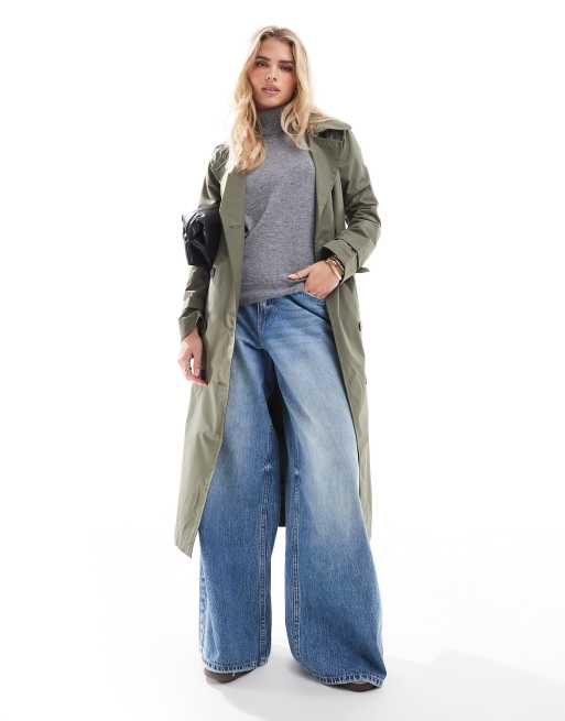 Brave Soul Petite – Długi trencz w kolorze khaki z paskiem