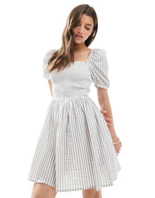 Brave Soul – Szara bogata w bawełnę sukienka mini w stylu milkmaid z kwadratowym dekoltem w paski