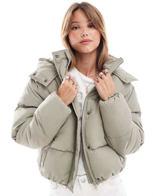 Brave Soul – Szałwiowa krótka kurtka ocieplana z kapturem