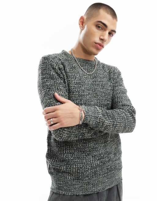 Brave Soul – Zielony melanżowy sweter z okrągłym dekoltem z grubej dzianiny