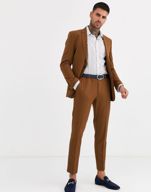 Burton Menswear – Brązowy garnitur o obcisłym kroju