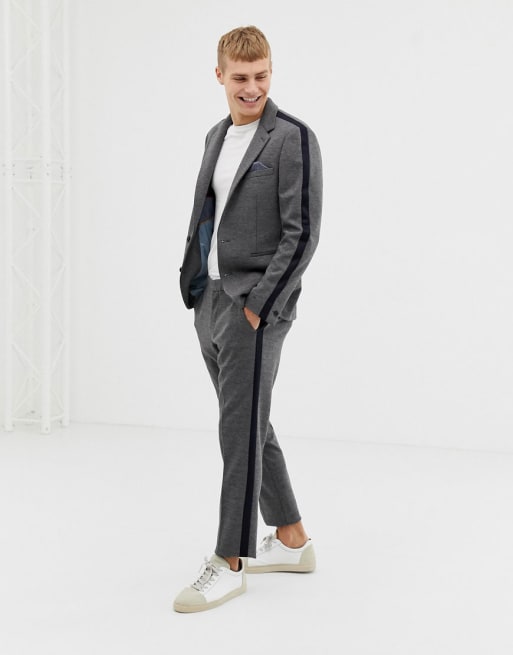 Burton Menswear - Szary dopasowany garnitur z lampasami