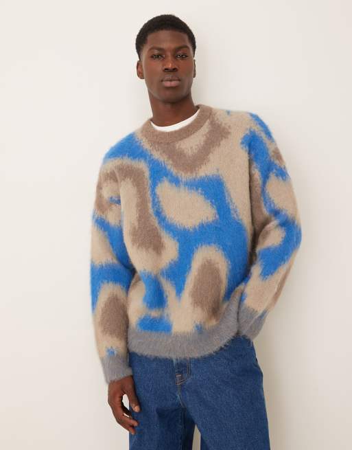 Calvin Klein Jeans – Beżowo-niebieski wzorzysty sweter ze szczotkowanej wełny alpaki