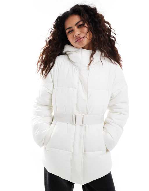 Calvin Klein Jeans – Biała kurtka ocieplana z paskiem i logo