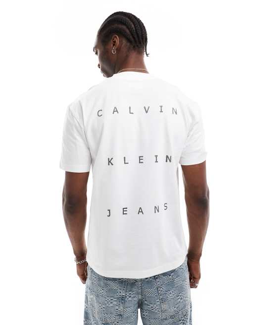 Calvin Klein Jeans – Biały T-shirt o luźnym kroju z nadrukiem na plecach
