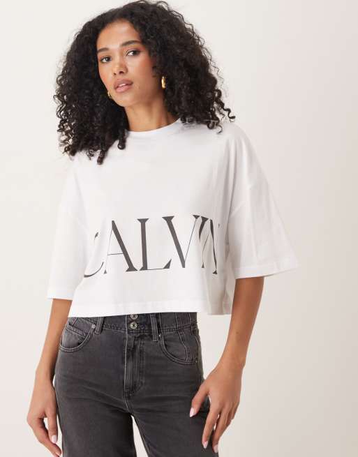 Calvin Klein Jeans – Biały T-shirt oversize z dużym logo