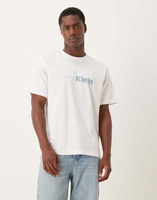 Calvin Klein Jeans – Biały T-shirt z dużym logo na środku