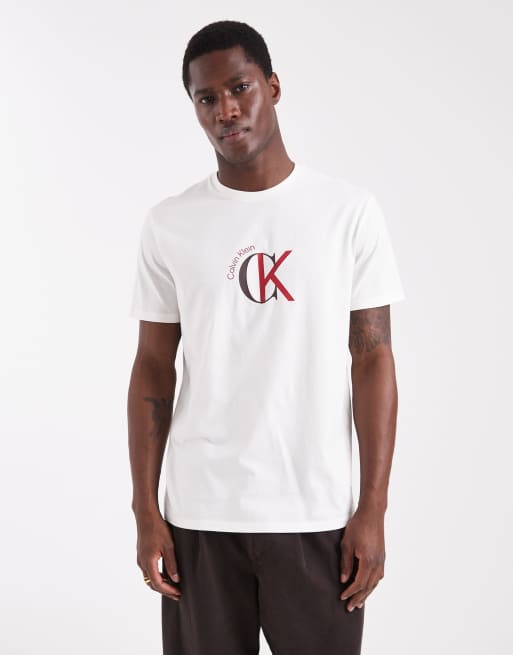 Calvin Klein Jeans – Biały T-shirt z materiału interlock z grafiką na piersi