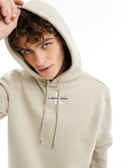 Calvin Klein Jeans – Bluza z kapturem w kolorze taupe z logo w formie monogramu