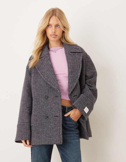 Calvin Klein Jeans – Ciemnoszara kurtka bosmanka średniej długości w kratę