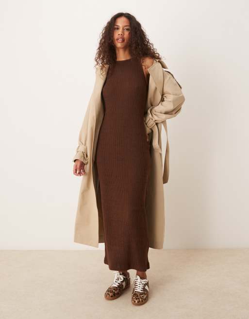 Calvin Klein Jeans – Cosy – Ciemnobrązowa sukienka maxi – tylko w ASOS