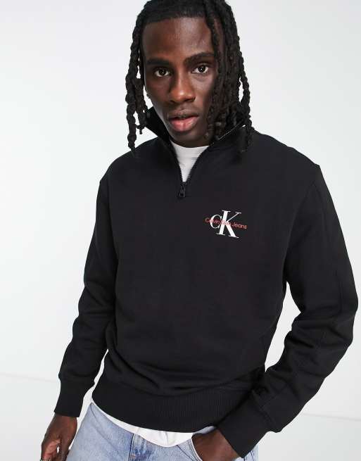 Calvin Klein Jeans – Czarna bluza z logo z monogramem i suwakiem pod szyją