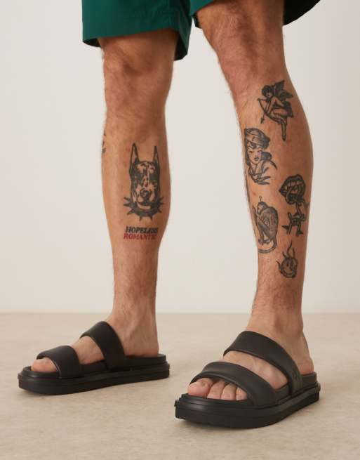 Calvin Klein Jeans – Czarne wsuwane sandały skórzane z podwójnymi paskami