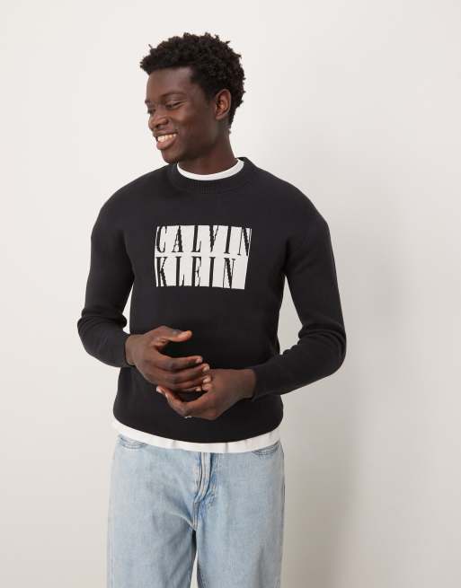 Calvin Klein Jeans – Czarny dzianinowy sweter z logo w ramce