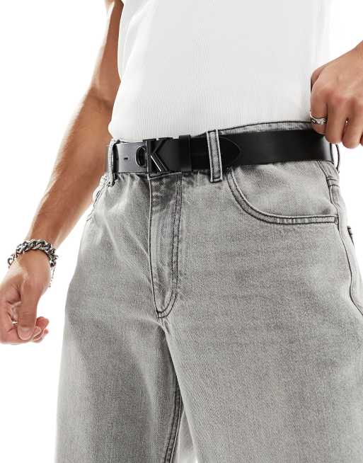 Calvin Klein Jeans – Czarny skórzany pasek o szerokości 35 mm ze sprzączką z monogramem