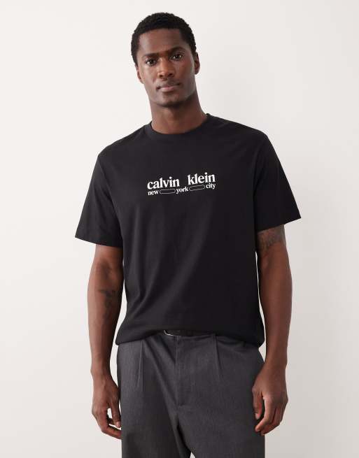Calvin Klein Jeans – Czarny T-shirt z grafiką NYC na klatce piersiowej