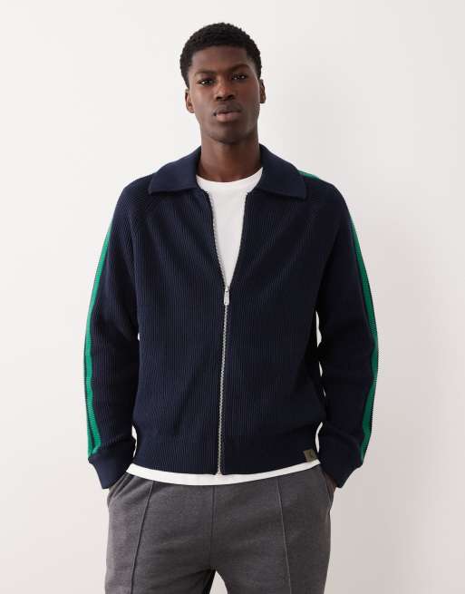 Calvin Klein Jeans – Dzianinowa kurtka dresowa w granatowo-zielone paski