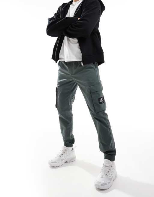 Calvin Klein Jeans – Grafitowoszare spodnie bojówki o obcisłym kroju