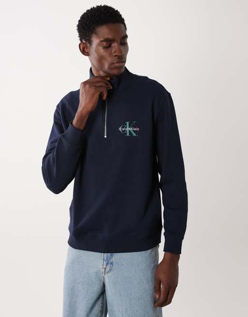 Calvin Klein Jeans – Granatowa bluza z zamkiem pod szyją i logo na piersi