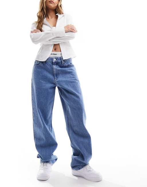 Calvin Klein Jeans – Jasnoniebieskie jeansy z prostymi nogawkami i efektem sprania w stylu lat 90.