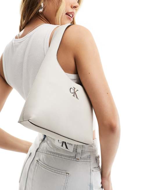 Calvin Klein Jeans – Kamiennoszara minimalistyczna torebka na ramię z monogramem