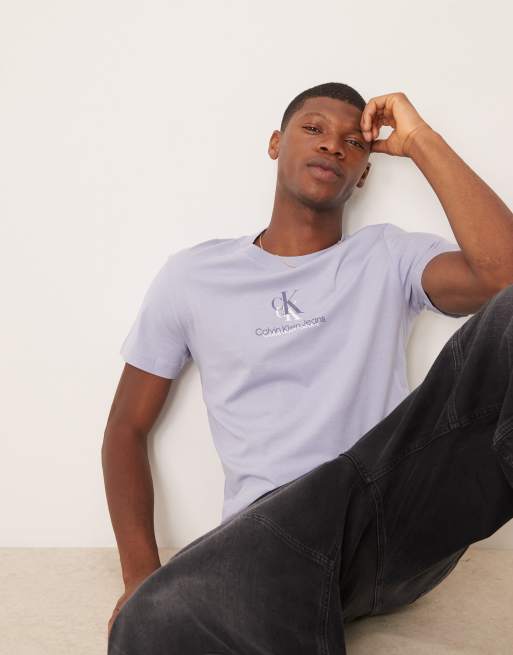 Calvin Klein Jeans – Liliowy T-shirt z logo z cieniem