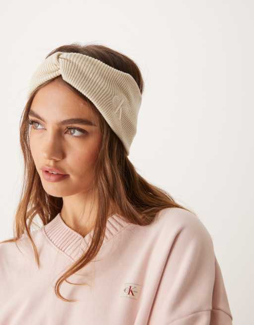 Calvin Klein Jeans – Opaska na głowę w neutralnym kolorze z monogramem