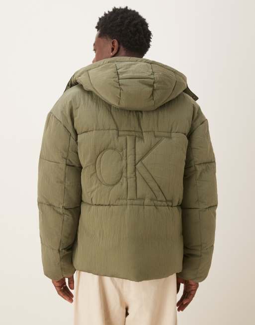 Calvin Klein Jeans – Pikowana oliwkowozielona kurtka z tkaniny ripstop