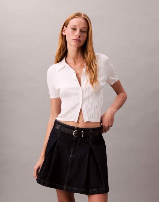 Calvin Klein Jeans – Spódnica jeansowa w kolorze indygo z zakładkami
