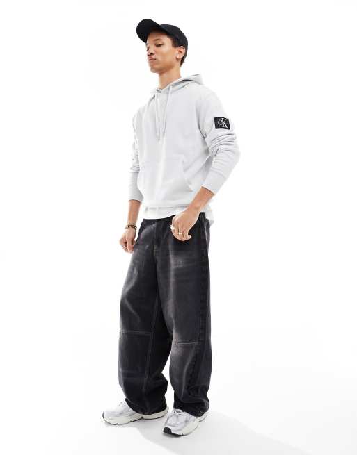 Calvin Klein Jeans – Szara bluza z kapturem i naszywką