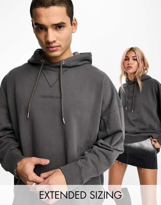 Calvin Klein Jeans Unisex – Szara bluza oversize z kapturem i ozdobnymi szwami – Tylko w ASOS