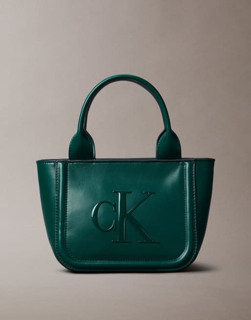 Calvin Klein Jeans – Zielona mała torebka typu tote z paskiem z logo
