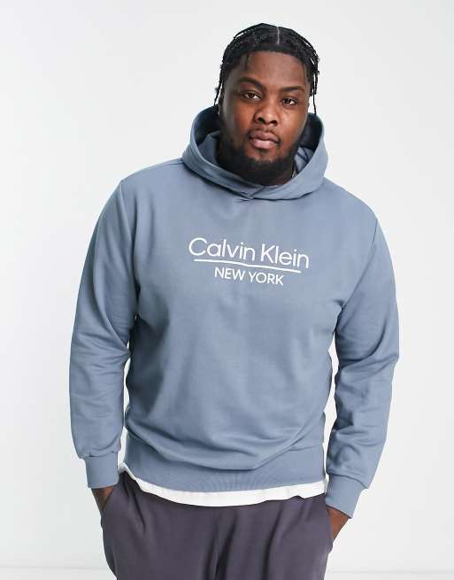 Calvin Klein Big & Tall – Szara bluza z kapturem z logo na klatce piersiowej