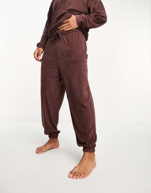 Calvin Klein – Brązowe przytulne joggersy domowe z materiału frotté