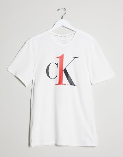 Calvin Klein CK One – Biały T-shirt z logo i okrągłym dekoltem