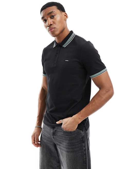 Calvin Klein – Czarna koszulka polo z piki ze stretchem i lamówką