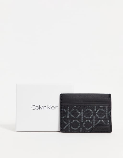 Calvin Klein – Czarne skórzane etui na karty ze wzorem z monogramem