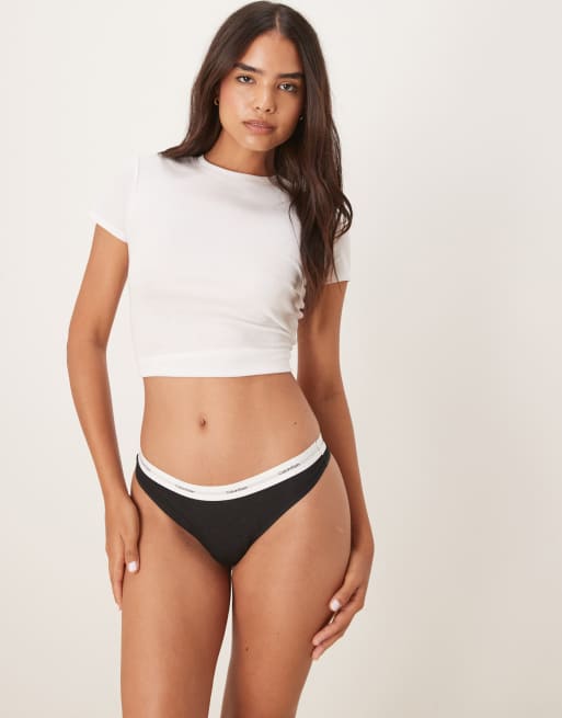 Calvin Klein – Czarne stringi z prążkowanej bawełny z domieszką stretchu