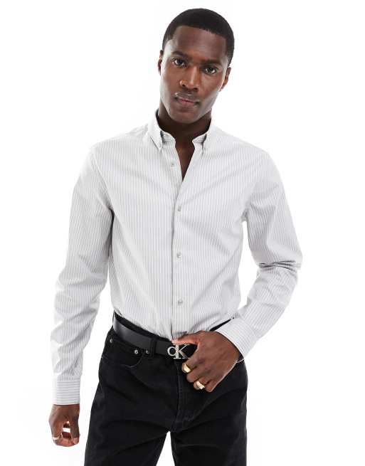 Calvin Klein – Jasnoszara koszula Oxford w prążki